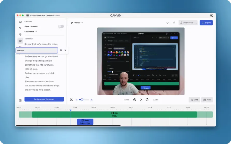 - Robust Video Editing & Transcript Integration: CANVID's powerful editing includes essential tools plus game-changing transcript-to-video editing: delete transcript text to automatically cut video, a time-saver Loom lacks.